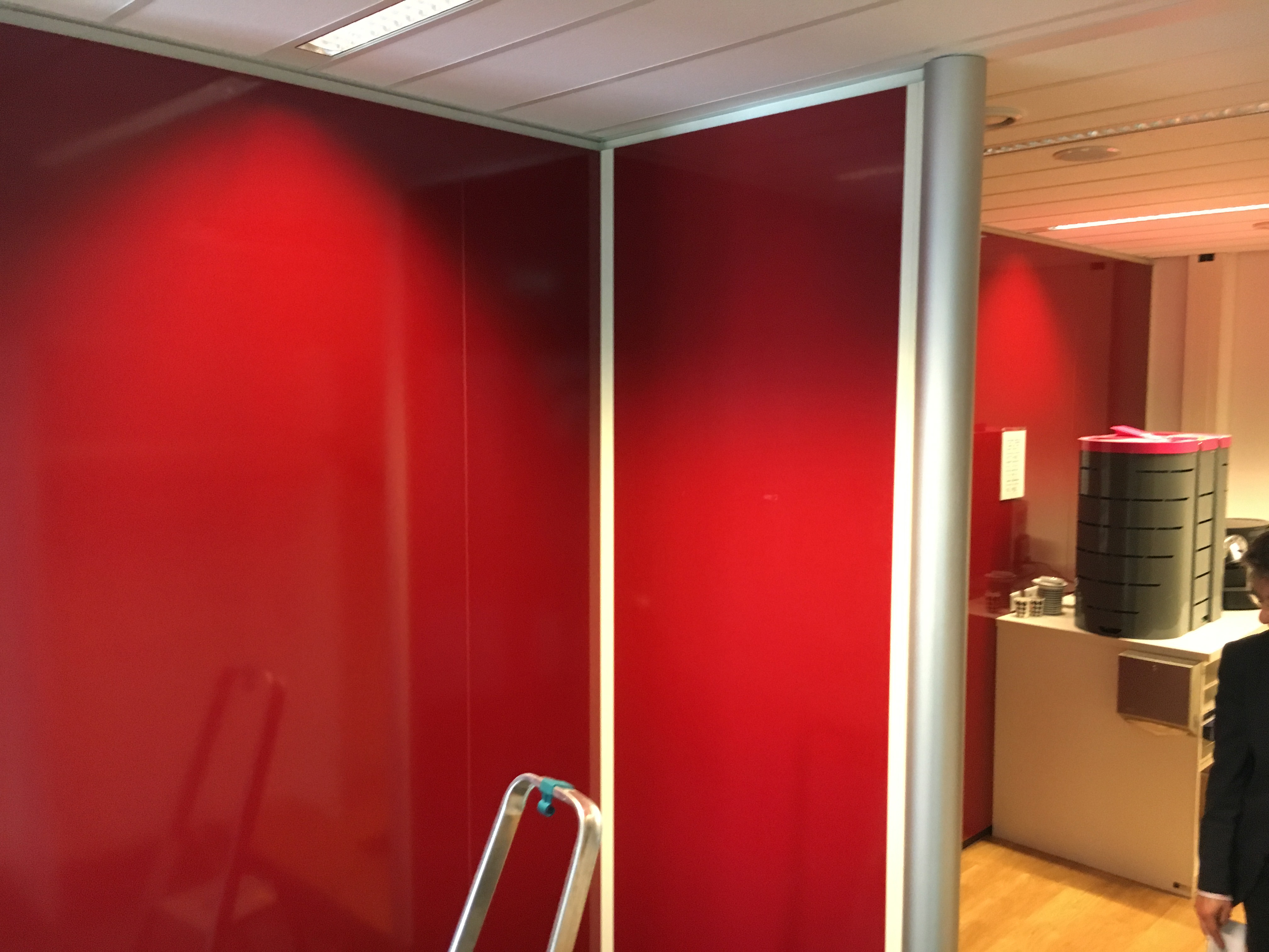 Honderden meters wandvullende whiteboardfolies op de wanden, privacyfolies bij de vergaderruimten en verdiepingen vol met de huisstijlkleur magenta (roze) op ramen, deuren en systeemwanden. Kortom, grenzeloze creatieve ruimte in het interieur, waar we je graag meer van laten zien.
