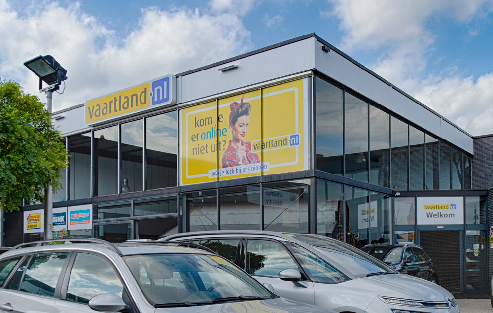 Jouw auto kan je ook online kopen, en wel bij Vaartland.nl. De moderne aanpak vroeg om een compleet nieuwe huisstijl. Niet alleen de website is een modern platform waarbij je jouw toekomstige auto ‘gewoon’ online koopt. Ook de vestigingen hebben een frisse en moderne uitstraling passend bij de huisstijl.